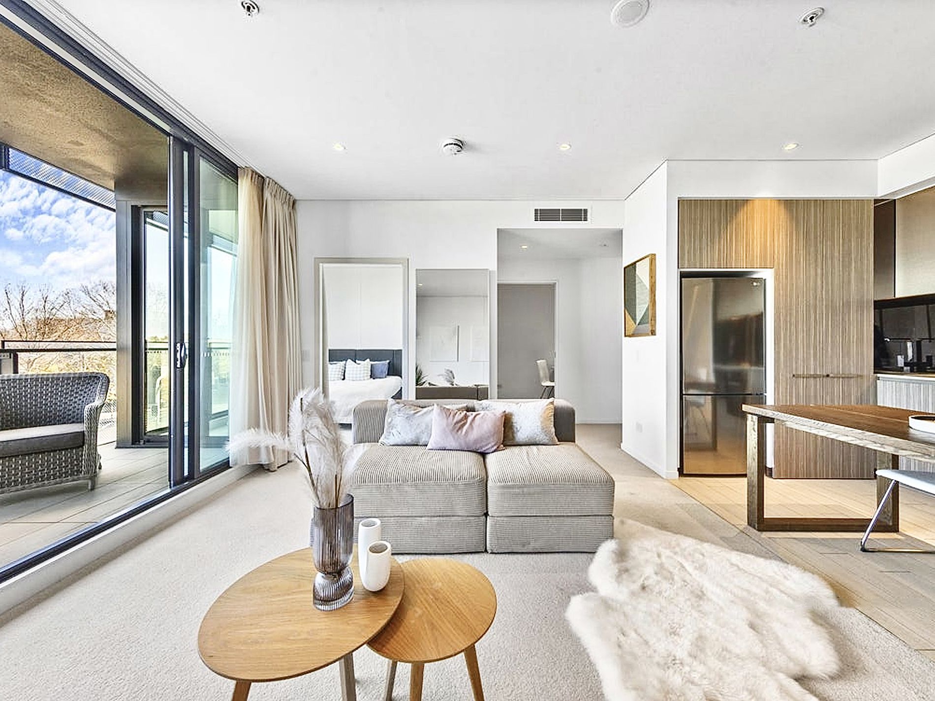 -Large and light filled living area with floor to ceiling windows and sliding doors